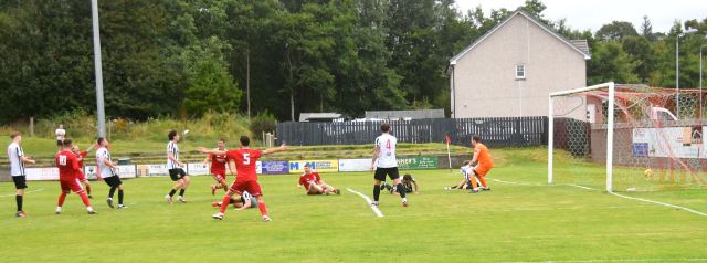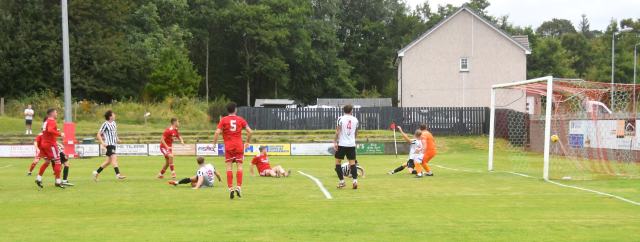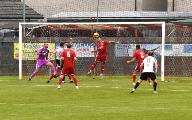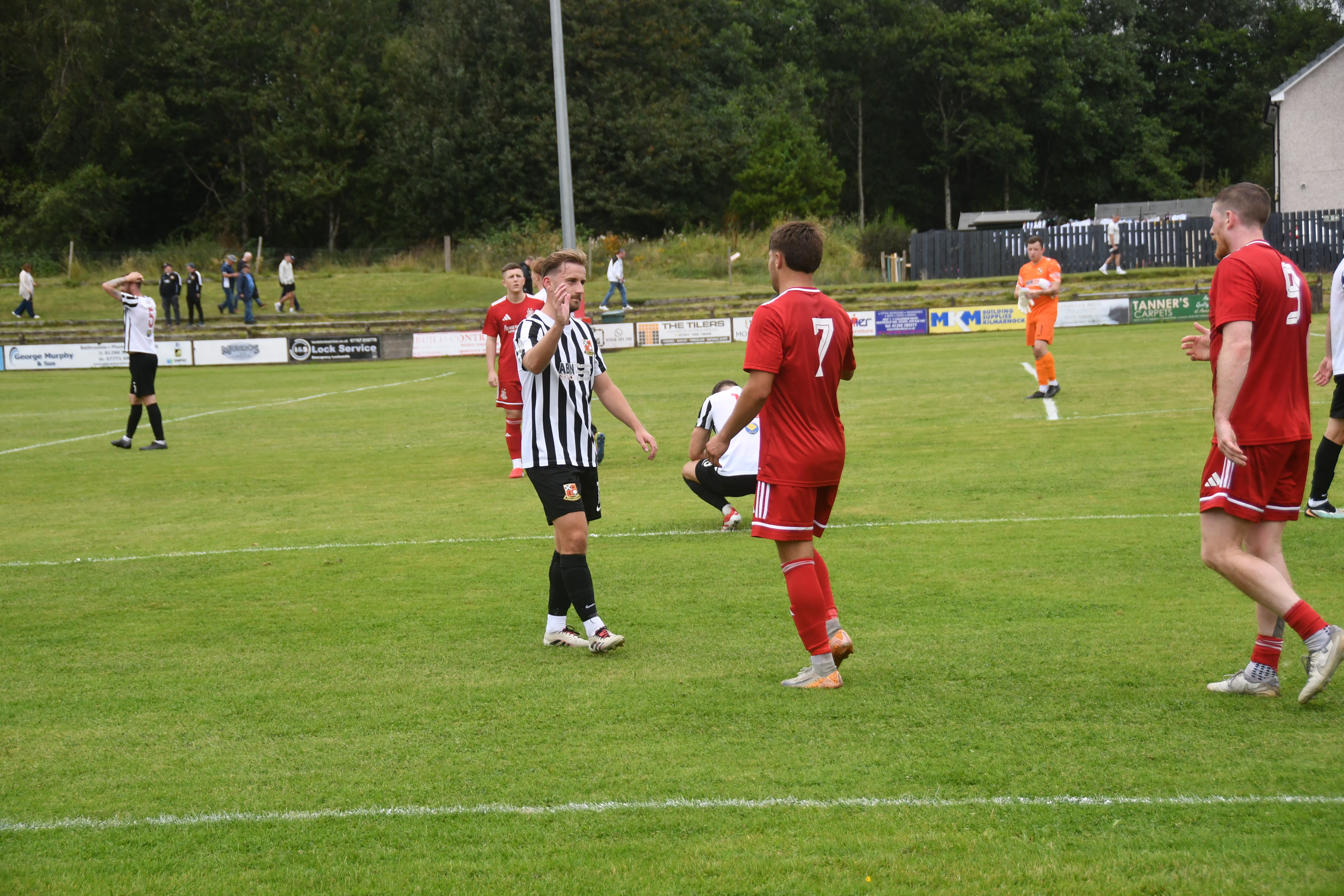 Beith whipped another ball into a busy box where Daniel headed it clear to the edge of the box where it was nodded on by Wilson and gathered by Gkegka to lob it high towards the near post for Collins only for Markey to claw the ball away and as two Beith players closed in David Craig cleared the danger. Two minutes into added time Fairlie drilled a low shot in the box that slipped just wide of the back post.