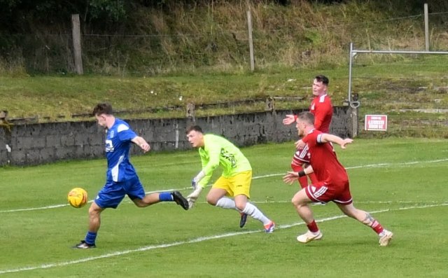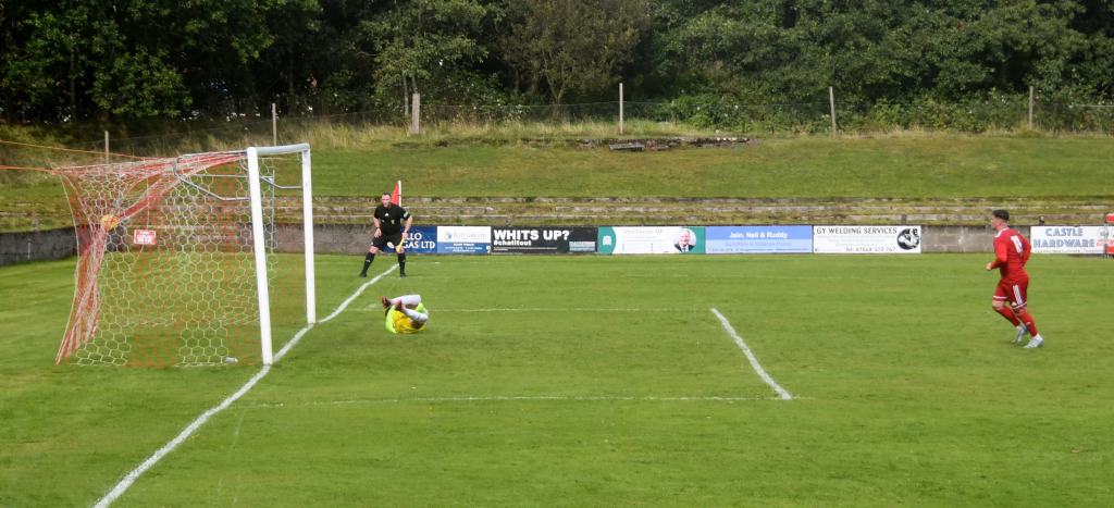 Soon after, Erskine picked up a pass to drive to the right hand corner of the box where he slipped it to Duncanson on the right touchline to loft the ball high into the far side of the six- yard box where Kerr and McDougall lurked, only for keeper Lynch to leap and pluck the ball out the air.
