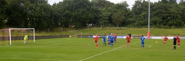 Just before the break, Erskine intercepted a poor clearance to fire a low shot from 20 yards only for Lynn to get down low and push the ball wide of the post. The corner kick led to another corner which was cleared.