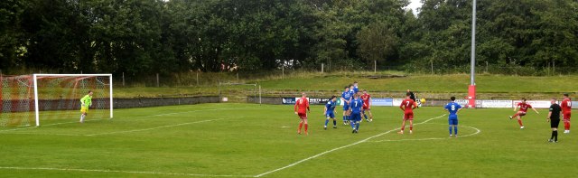 At the other end the Taylor Fadian gathered the keeper’s goal kick in the centre circle and clipped the ball to Rui Carbolla on the left who pushed forward to the corner of the penalty box and with defenders now congregating he fired a dipping shot that bounced off the top of bar.