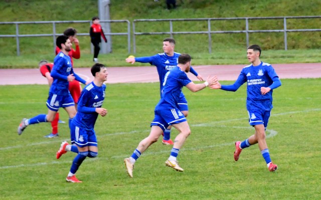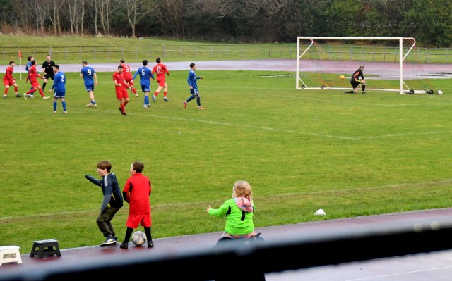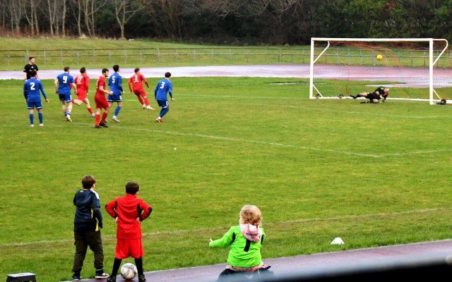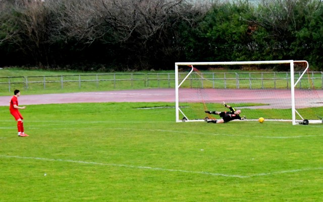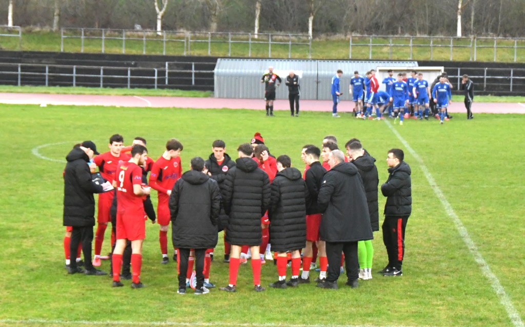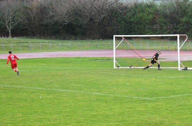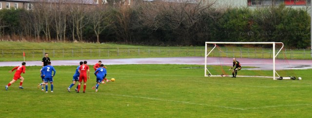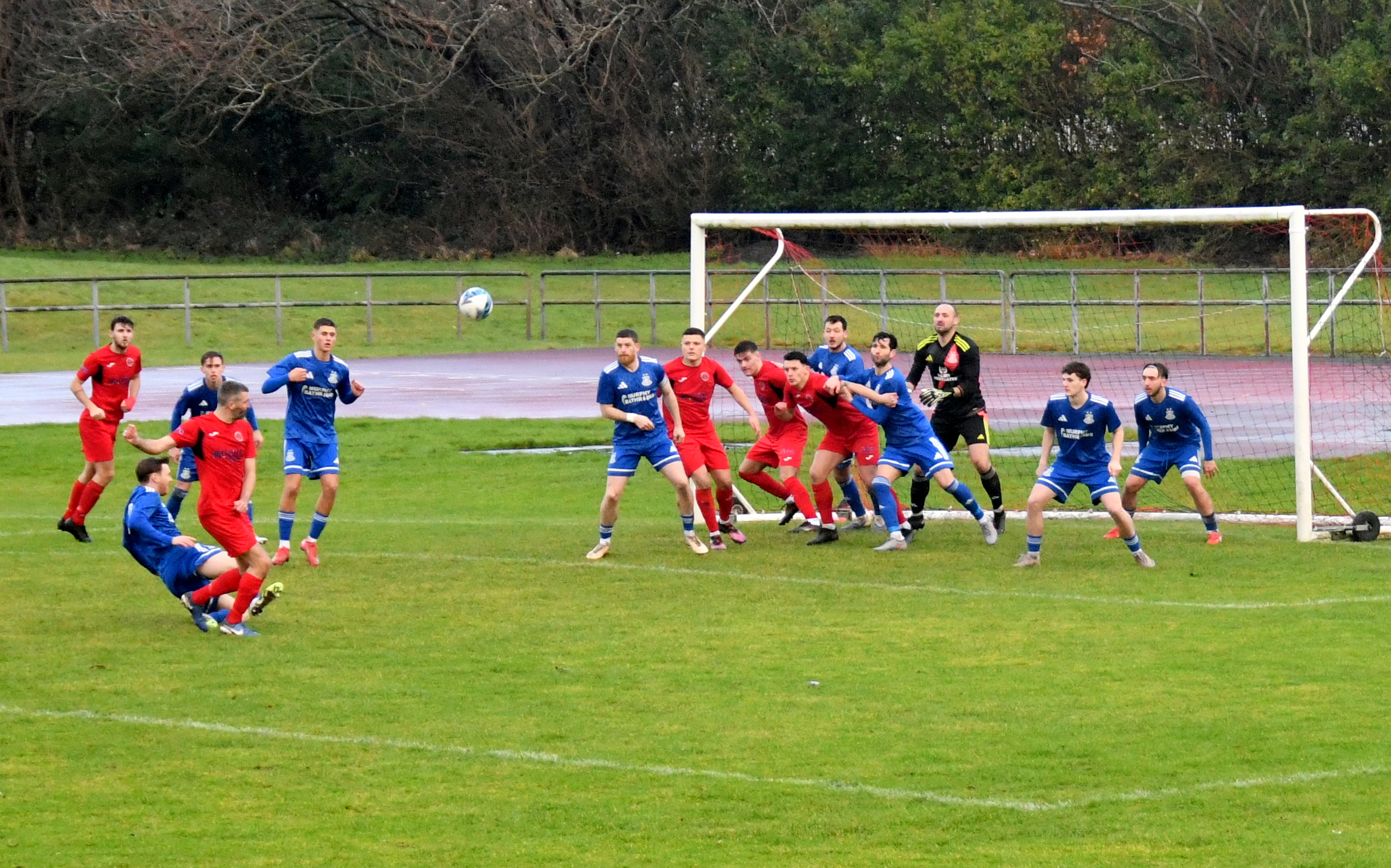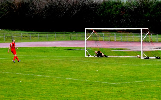 The home side continued to the peg the visitors back into their own half with fluent play. Beckley was picked out in the box and with McCracken tight on his back he rolled the ball back to the lively Lewis Kenmore only for his shot from 22 yards to sail over the bar.