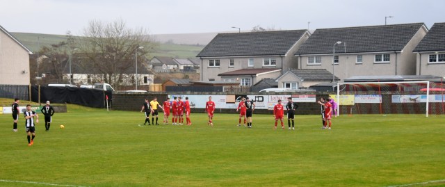 On a dreich day Pollok kicked off and were first to threaten after a long ball was launched upfield for Carlo Monti to chase only for Lewis Currie to stoop and head the ball back to the outrushing keeper Ollie Ecrepont to smother it, just inside the 18 yard line, forcing Monti to hurdle him. Currie was soon in action at the other end after Ross Lindsay floated a free-kick into a busy Pollok box only for his shot from 8 yards to be blocked by Jordan Scott.