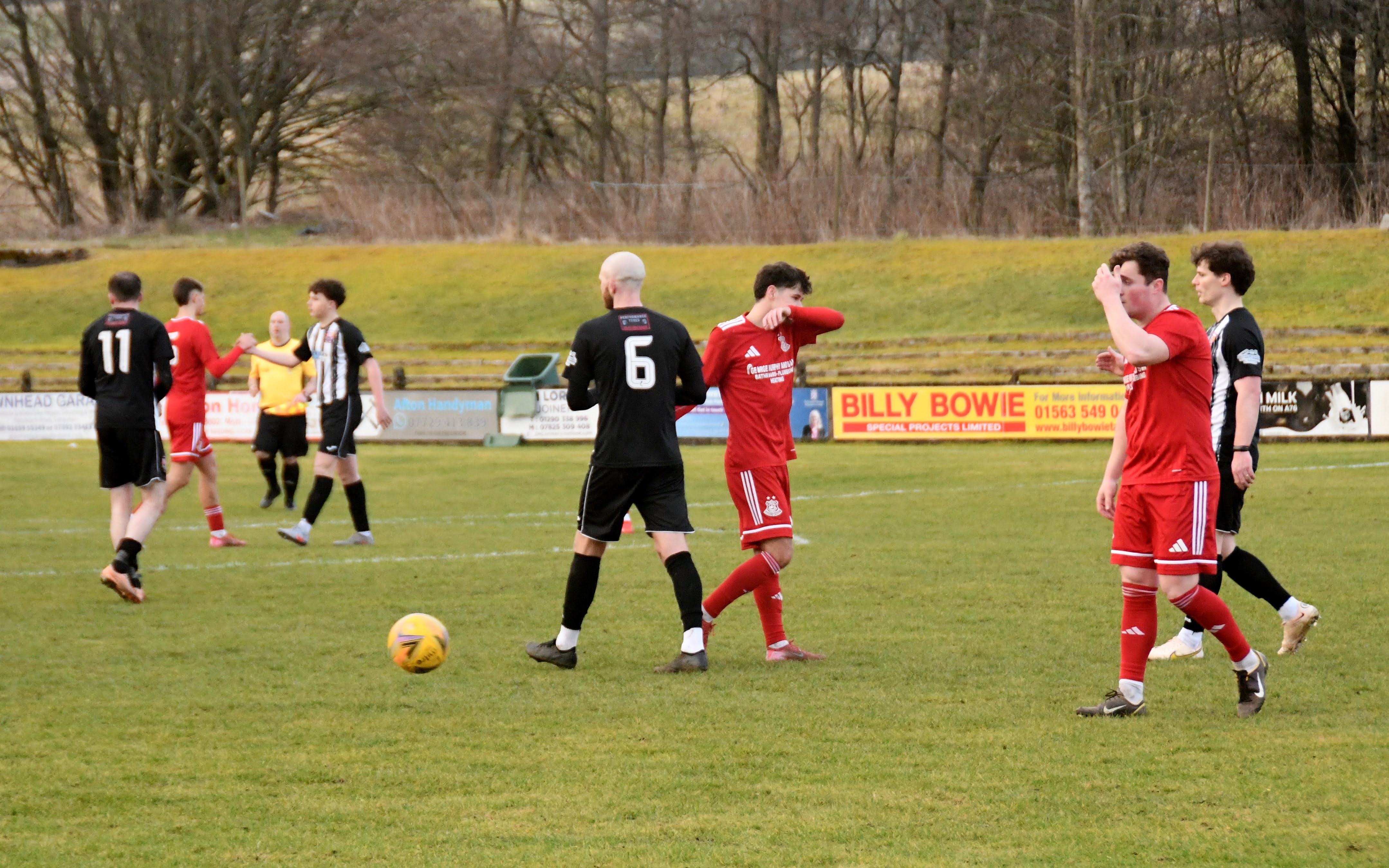 A big thank you to the New Cumnock Striders for sponsoring the match ball and taking the time to pose with Glenafton’s Tommy McKenna.