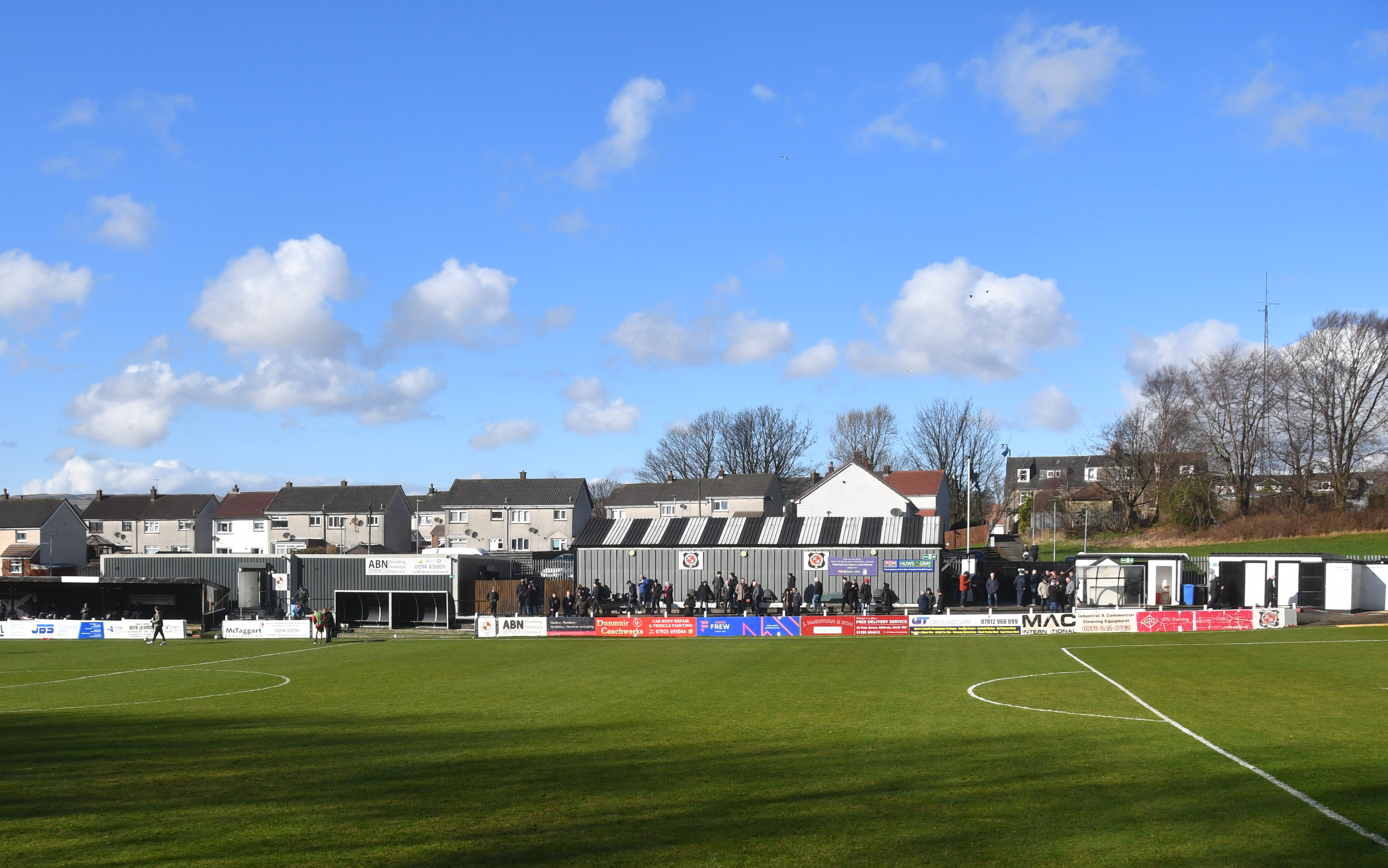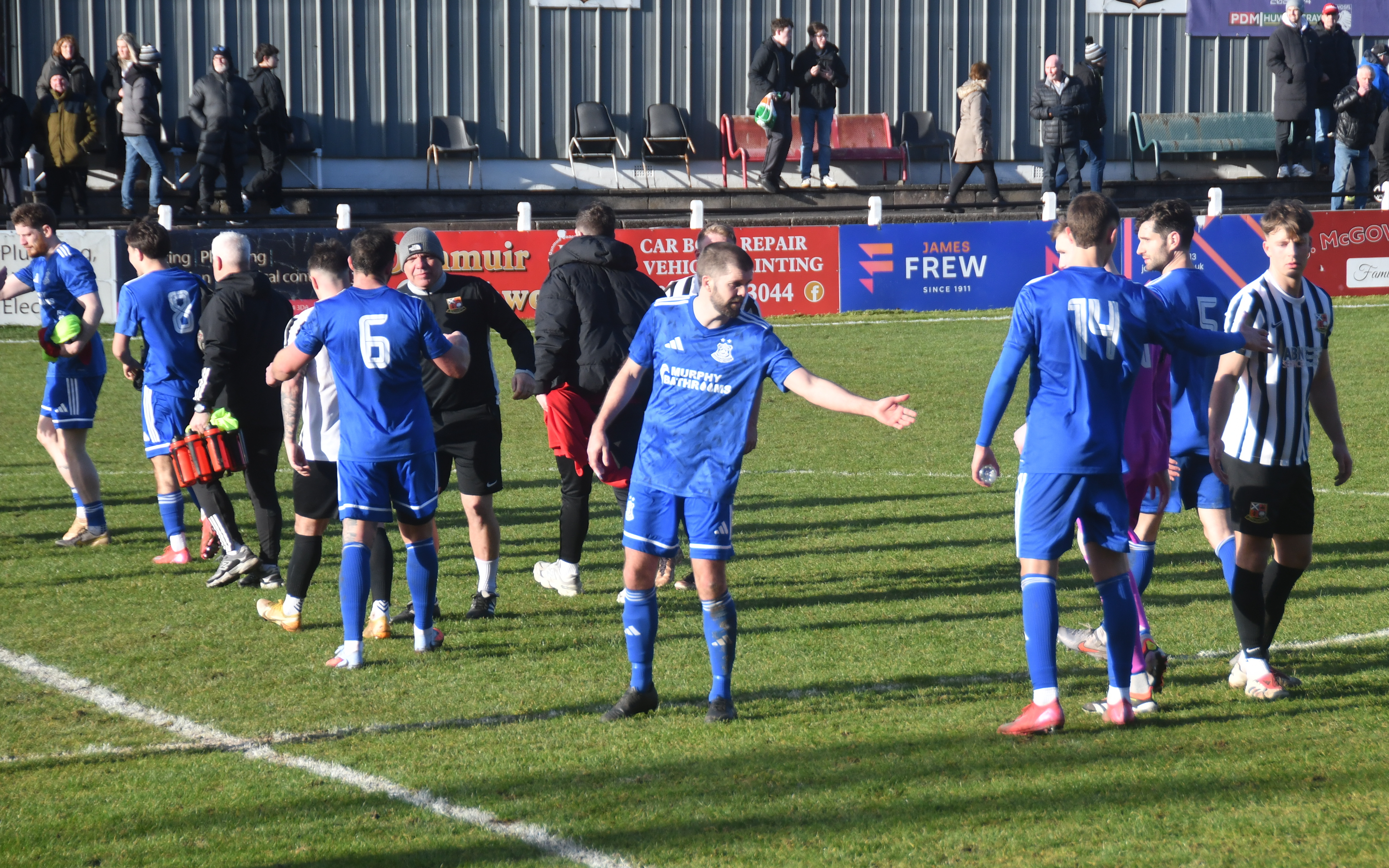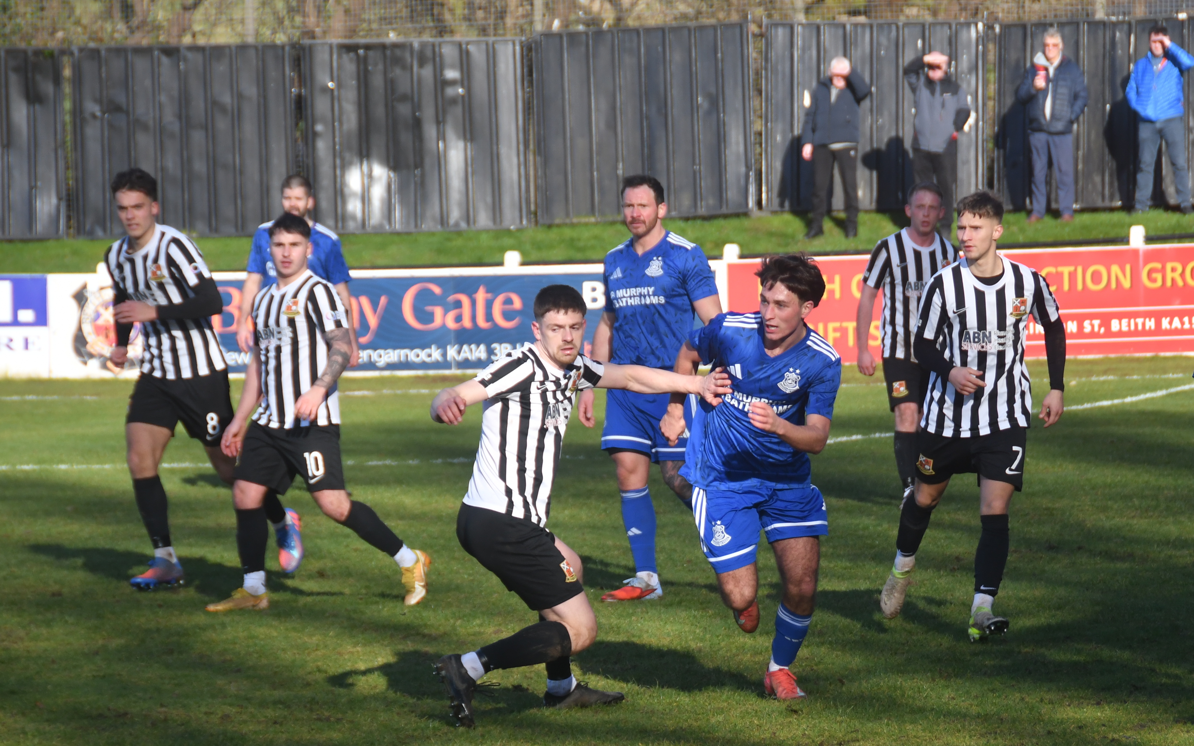 Play raged back and forth, or up and down on the famous Bellsdale slope, adorned now with new floodlights, switched off of course, as proclaimed when there’s sunshine on Beith!