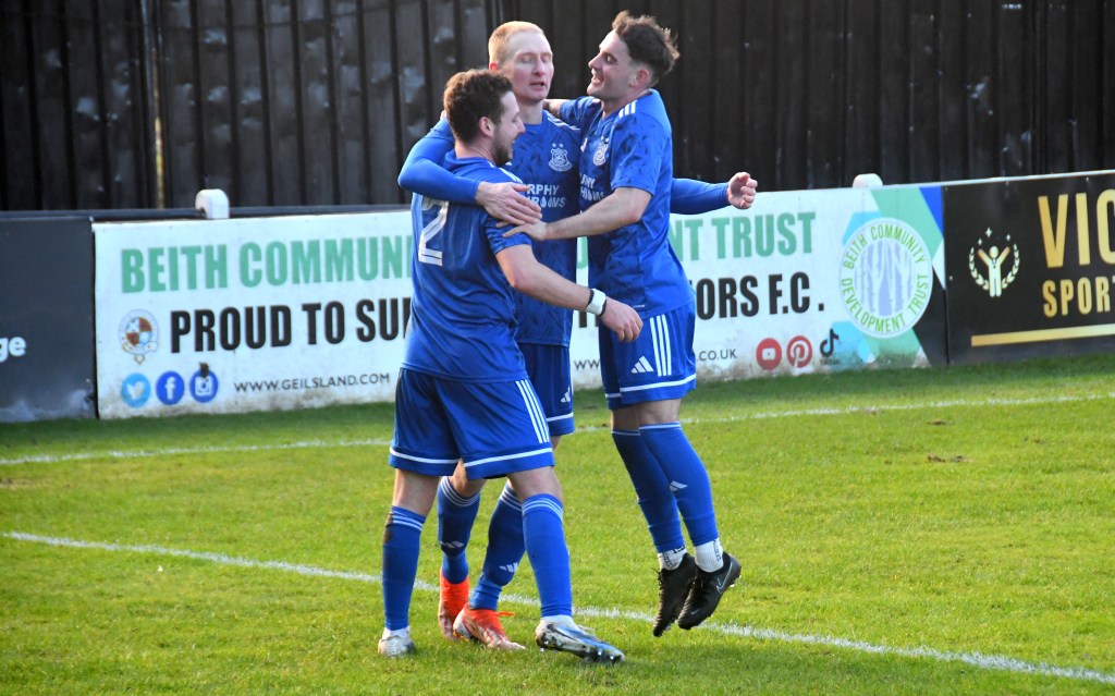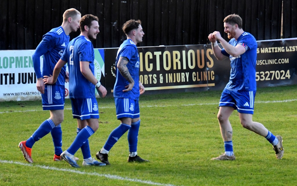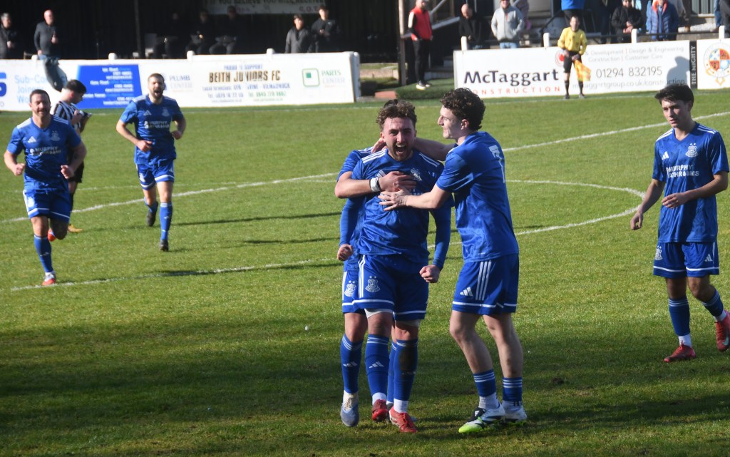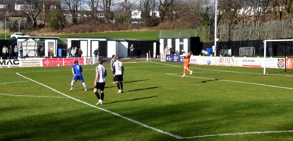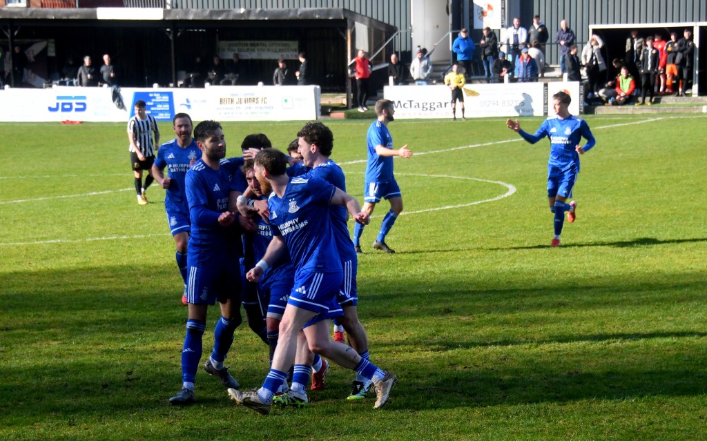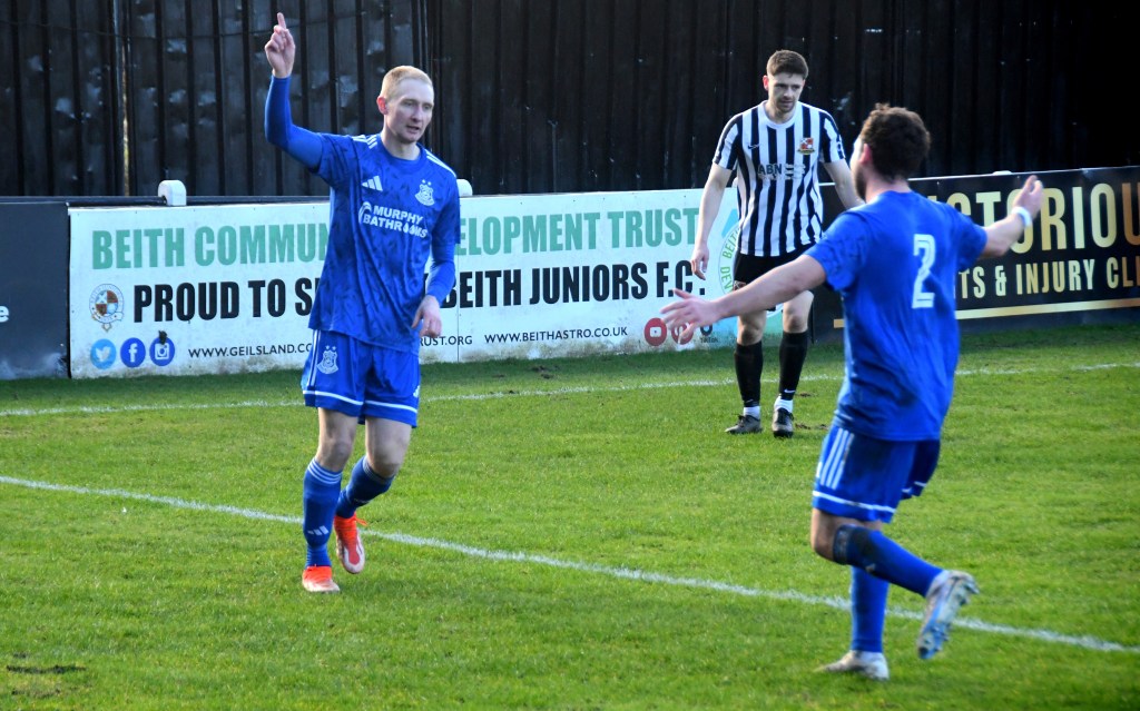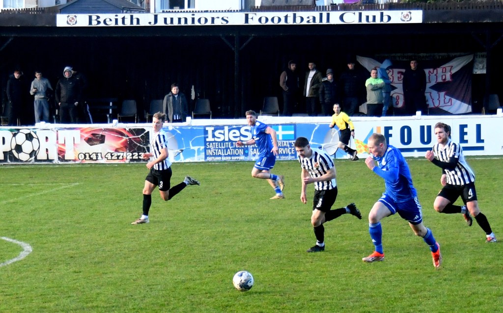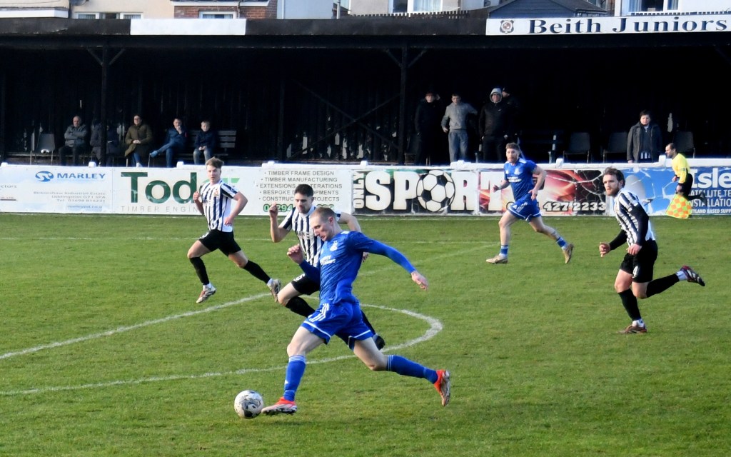 Beith kicked off shooting down the slope and enjoyed a spell of early pressure culminating in a corner on the right that Kieran MacDonald floated to the near post only for Ali Boyle’s header to be blocked and then mopped up by Jamie Wilson.