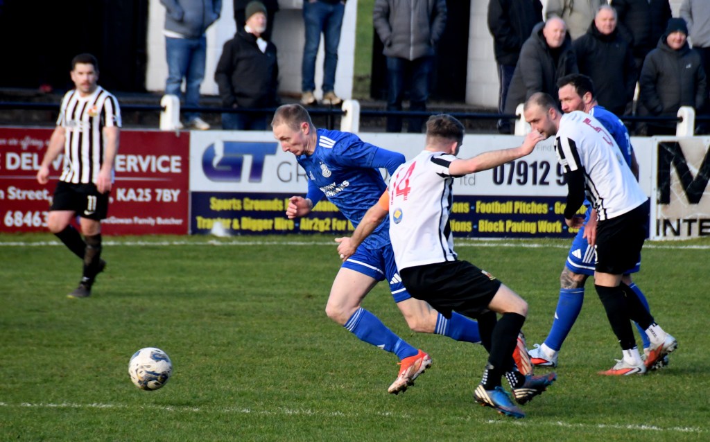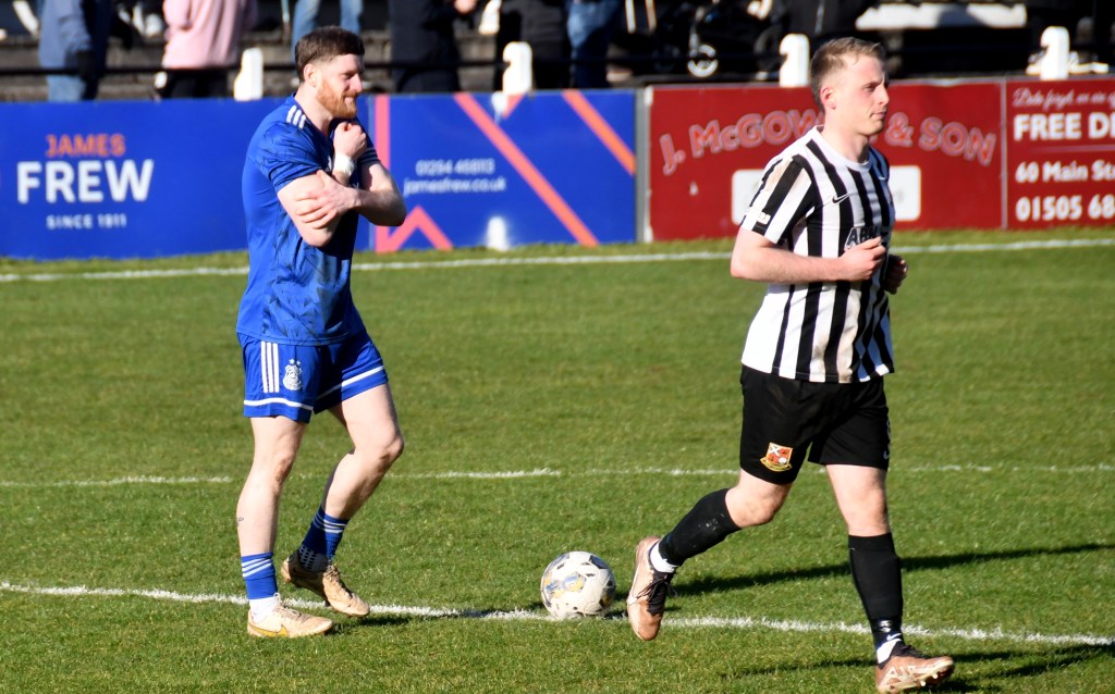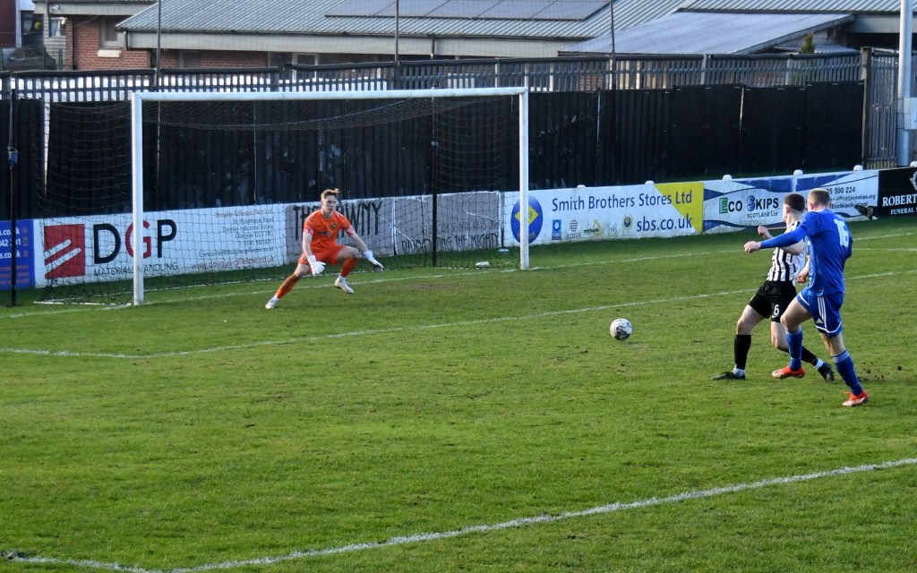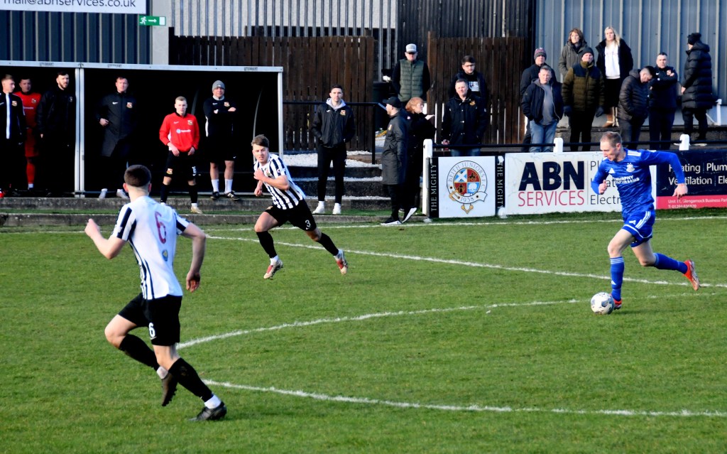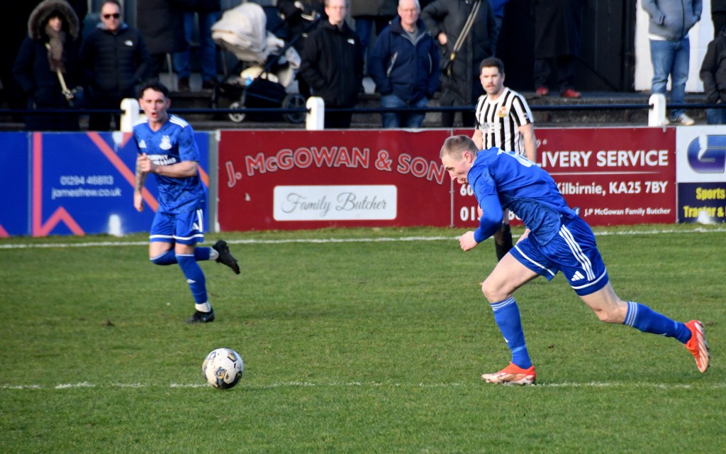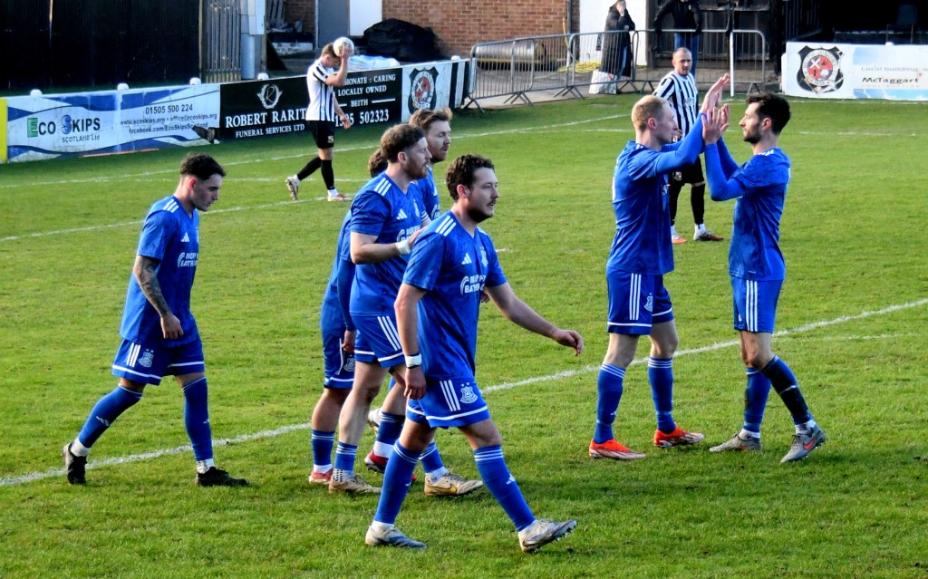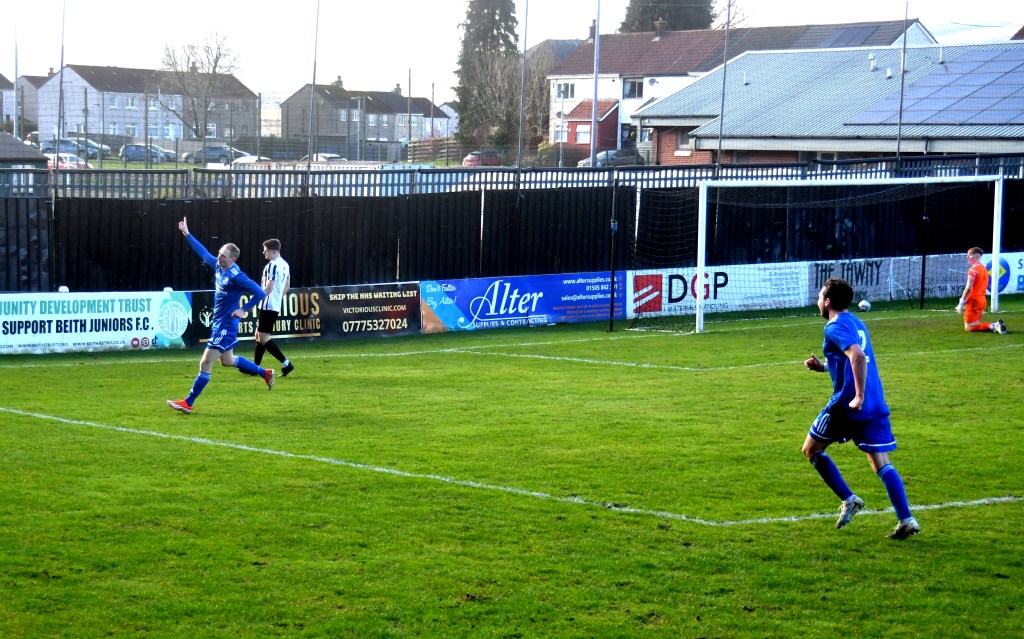 Beith kicked off shooting down the slope and enjoyed a spell of early pressure culminating in a corner on the right that Kieran MacDonald floated to the near post only for Ali Boyle’s header to be blocked and then mopped up by Jamie Wilson.