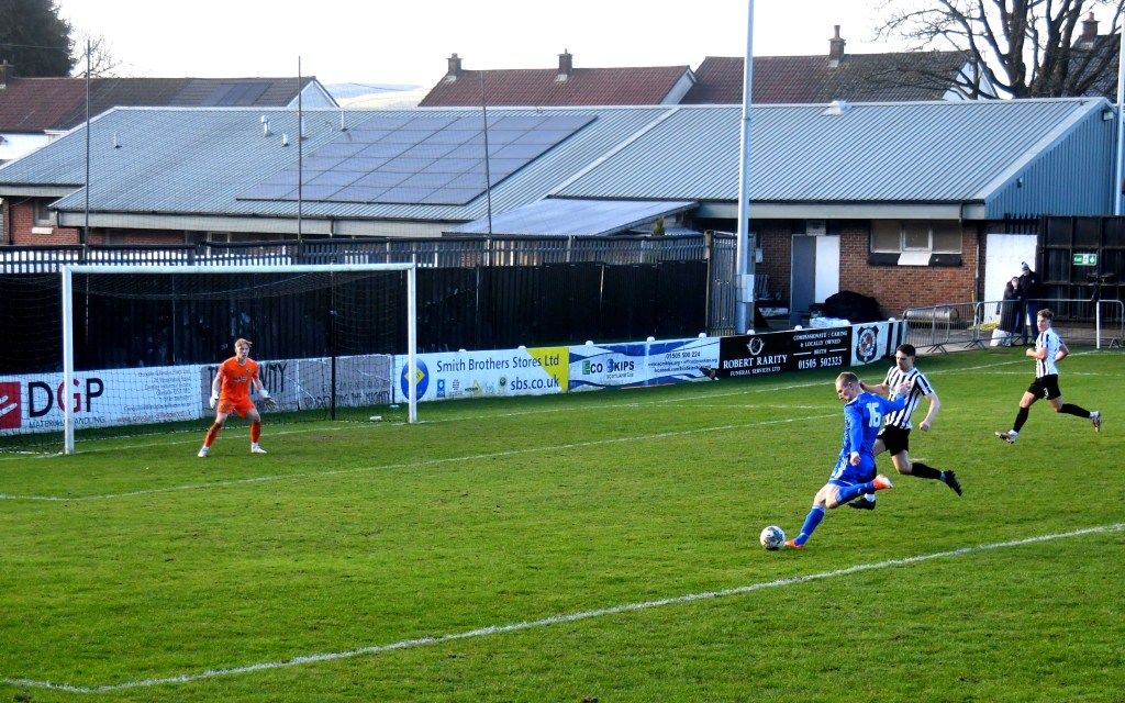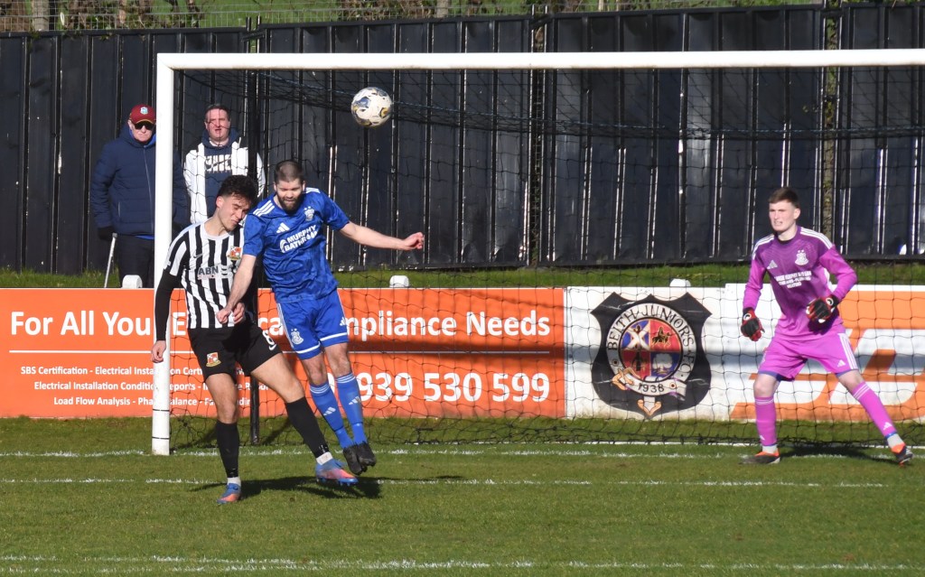 Glens responded with Jamie Wilson blasting a shot from 25 yards out that deflected off Rumsby for a corner on the right that Low launched high into the azure sky to descend at the back post where Ollie Rowe won the aerial battle only for his header to slip wide of the post.