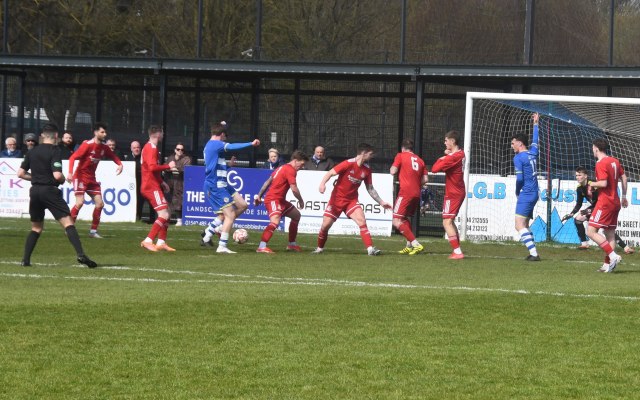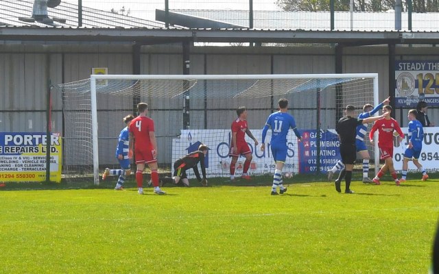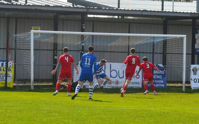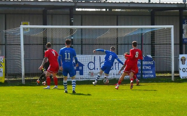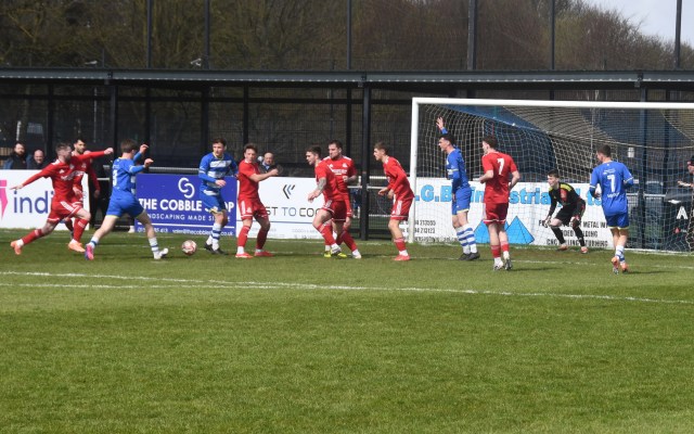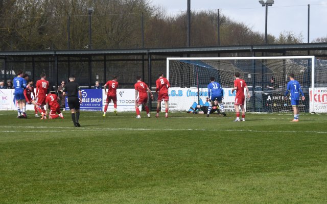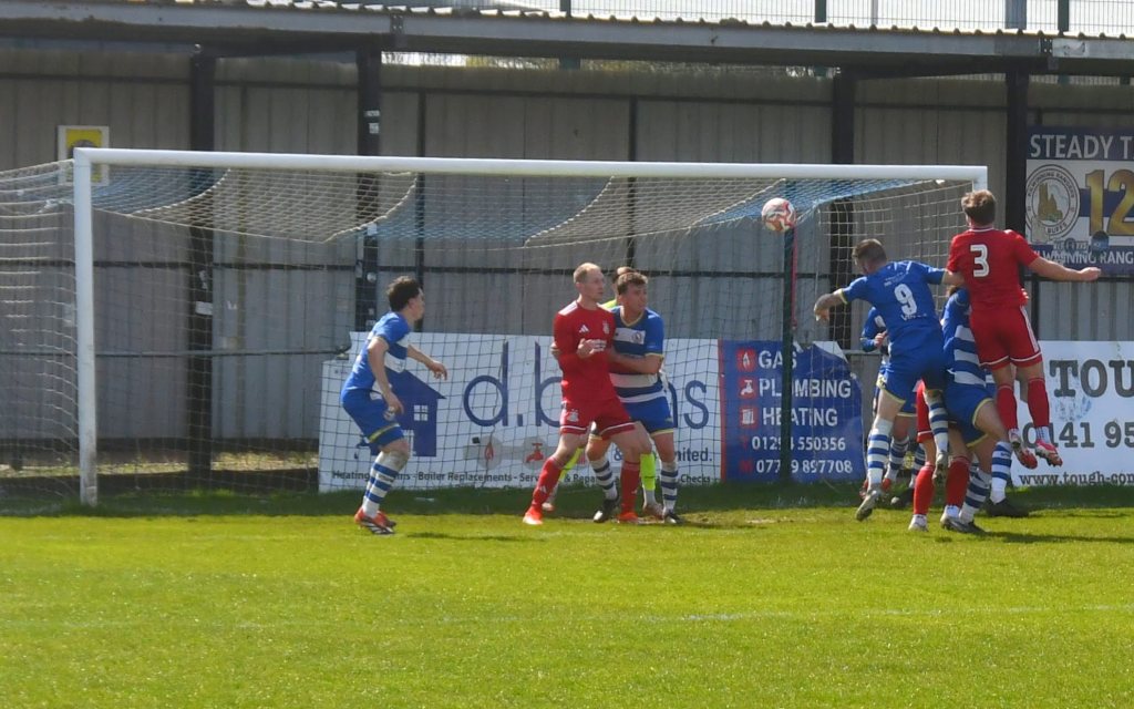 The visitors began to have some decent possession in the Buffs half. Michael Mullen with his back to goal on the 18 yard line held off the push in the back by Mackintosh and forced his way into the box before chipping a shot that dipped over the bar, albeit keeper Dylan Brown had it covered.