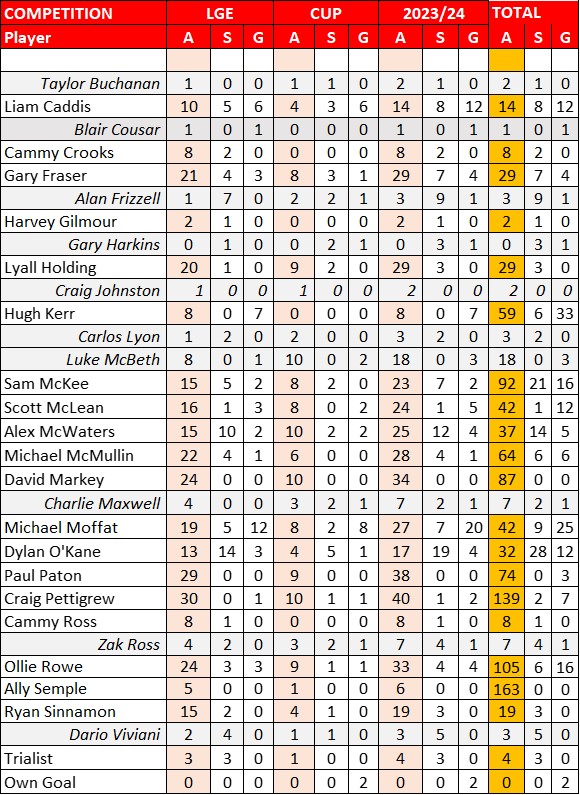 Appearances & Goals | 15/05/2024