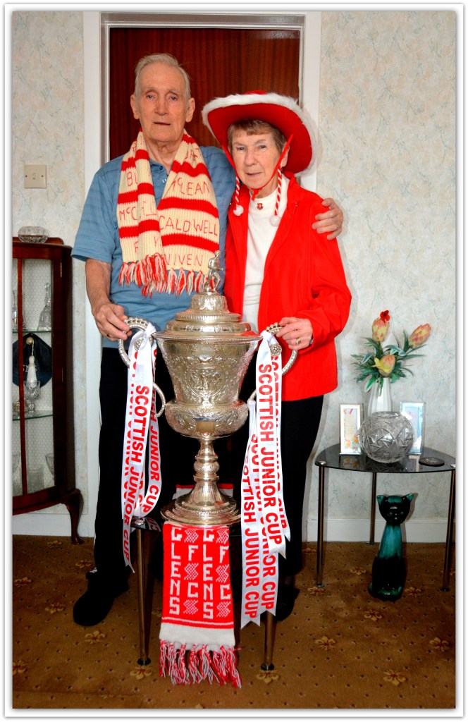 I visited both Danny and Mary in Bute House Care Home Cumnock in late December 2019 after the Glens had defeated Cumnock Juniors in a league match at Townhead Park. We spent time together looking over many of the photos on view here which brought back many fond memories – Danny named all his team-mates in the Bank School team of 1948.