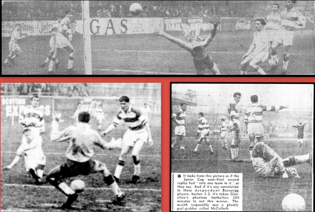 In the first replay , Danny scored in the 30th minute to cancel out Rose’s opener. Billy Paton put the Glens ahead in extra-time but a last minute own goal by Willie McLean forced a second replay.