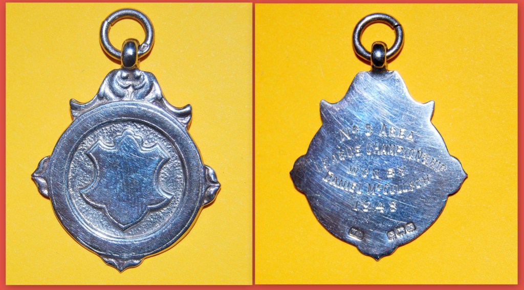 Both Glens and Kilwinning went on to win their respective South and North Section titles. The Saturday before the Championship decider at Cumnock four Glens player were injured in a car accident and despite requests to delay the play-off, it went ahead as scheduled. Missing from the Kilwinning line up was Danny McCulloch as favourites Buffs were crowned Western League Champions following a 4-1 victory; the ubiquitous “Newman” scoring for the Glens. It is assumed that Danny would receive a championship medal, to add to the 4 won while starring for Glenafton.