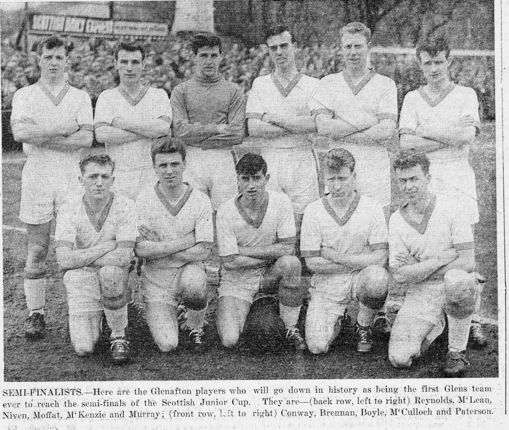Glenafton enjoyed great success in Season 1958-59, winning the South Section League and then thrashing Irvine Meadow, the North Section winners by 3-0 in the Western League Championship decider at Recreation Park, Stevenston.