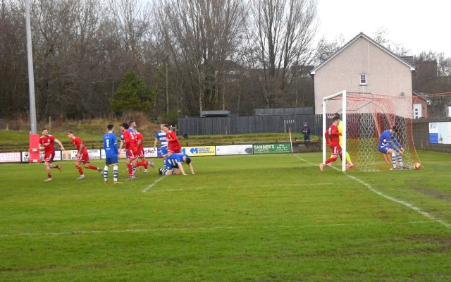 Cumnock were first to threaten after Oliver Fisher whipped the ball in from the right for Adam Forde only for his header from 8 yards out dipped over the bar, although keeper Ollie Ecrepont at full stretch appeared to have it covered. Jamie Conn lashed a ferocious shot from 18 yards which had the keeper beaten only for the ball to crash over the bar.