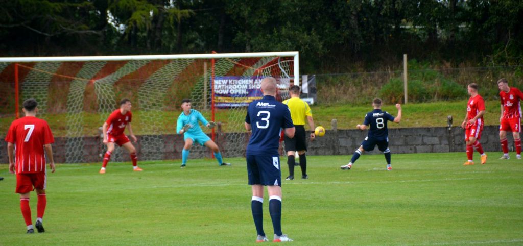 Play raged back and forth and as half-time loomed Gartcairn enjoyed a spell of pressure which saw them win a corner-kick but this landed on the roof of the net. No. 3 then broke down the left before cracking a shot from the corner of the penalty box only for it to sail well over the bar. Soon after from almost the same position Eley opted for a low powerful shot that Johnstone got down low at the base of the post to push the ball away to the side which was immediately pounced upon by Mark McGuigan who tried to squeeze home a shot home from a tight angle but Johnstone blocked this too and Craig Pettigrew mopped up the loose ball.