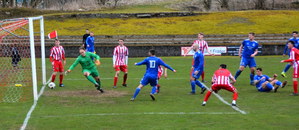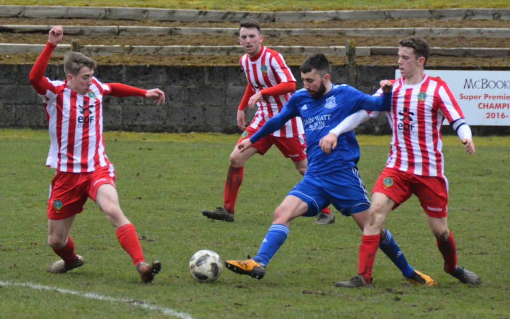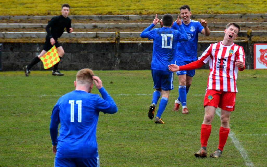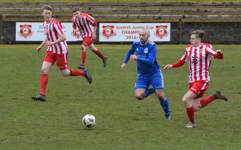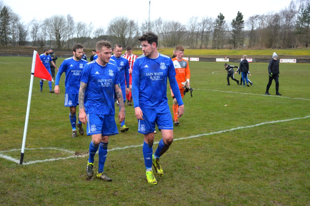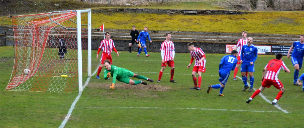 Muirkirk countered with a well worked move down the right flank ending with Ferris clipping a marvellous ball to the far post for the incoming Dillon McLauchlan only for Wallace to time his tackle to perfection at the expense of a corner which was headed clear by McCann.