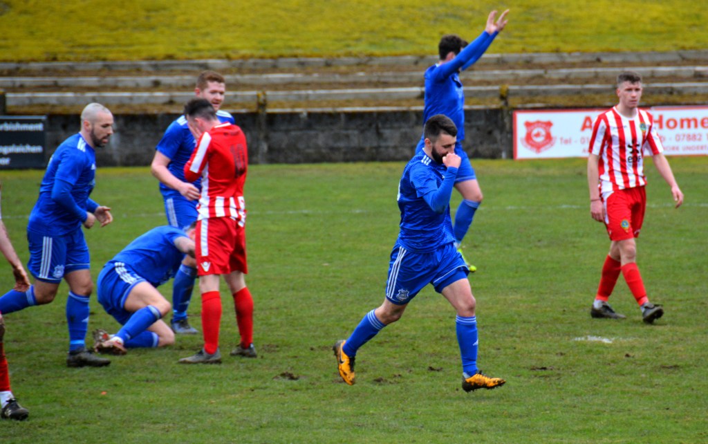 Of course the first game of the season also provided the opportunity to welcome the summer signings to the club. Returning to the Glens for a second spell were midfielders Leon Murphy and Dean Hawkshaw along with defender Rhys Wallace who trained with the club last season. Making up the new faces were keeper Michael McKinven, midfielder Evan Maley, striker Ross Cameron and player-coach Tony McParland.