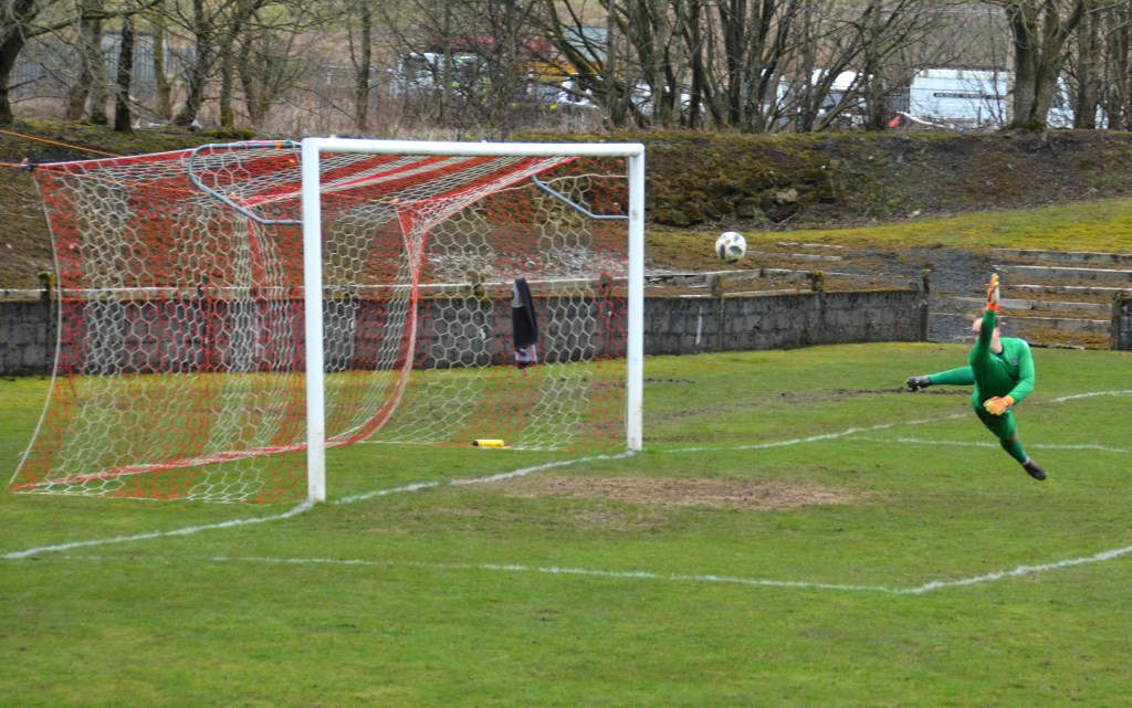 Glens continued to press as Muirkirk were content to sit in. Chances from set pieces continued to come and ago while Bogle continued to pull off some decent saves. Midway through the half he made an excellent block to prevent Moore from breaking the deadlock.