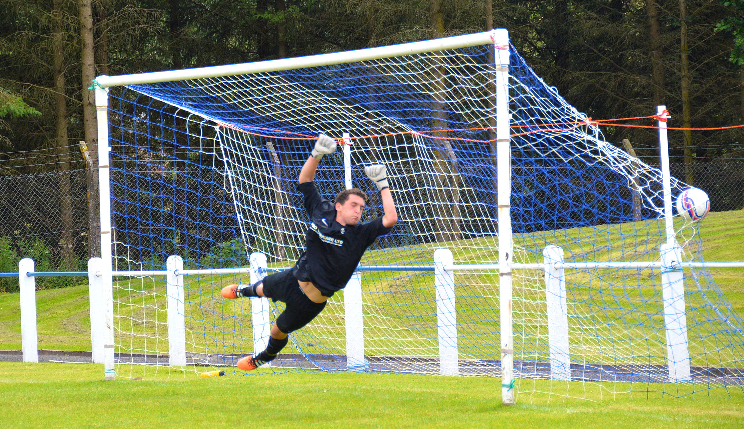 The home side were soon back on the front foot with Orsi causing problems with his powerful runs down the right while a Cairns free-kick from the left had Brown juggling the ball before getting under control as McCann hoped to pick up the pieces. Glenafton continued to press and yet had to be wary of the less frequent ‘Ford attacks and midway through the half McGarrity did well to get down low and smother a low angled shot from McClune. At the other end Park and Orsi combined well down the right before Orsi pulled off a great save from Brown.
