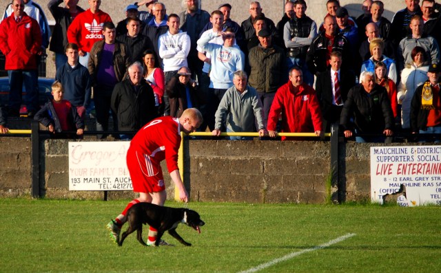 Almost a season separates this meeting of Talbot and Glenafton and the previous one back in August when the visitors humbled their hosts by inflicting a hefty 4-1 hammering. Now as then, the sun again bathed the Beechwood baize giving some credence to the local appellation of ‘God’s Little Acre’, albeit a name coined in that best Boswellian tradition of ‘taking critical liberties’. Summer football however has its drawbacks and the ‘Malahide midgies’ temporarily abandoned their habitat on the Kirkland Green to descend upon the terraces in Goudie-esque numbers. Unlike the pit-bull terrier that ‘invaded’ the pitch on a couple of occasions their bite proved to be worse than their bark.