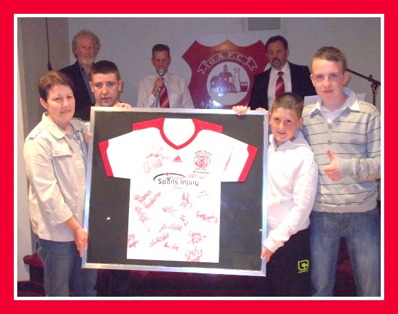 The Telfer Family accepted a signed Glenafton Athletic top with Sammy Telfer’s name embroidered round the club badge. Sammy a life-long Glens’ supporter passed away recently.